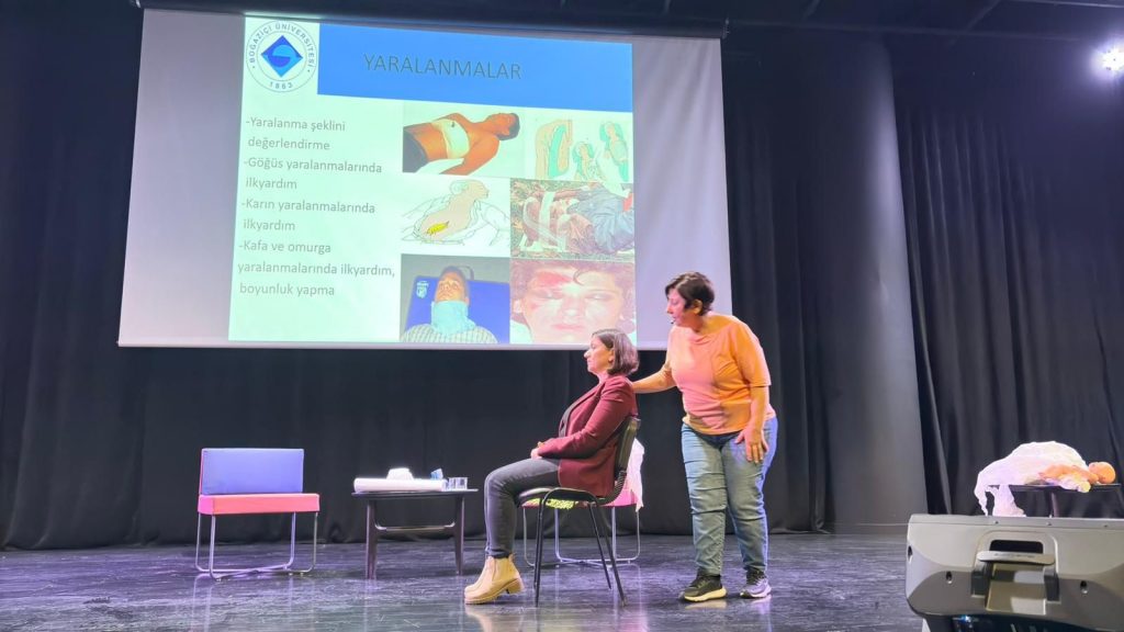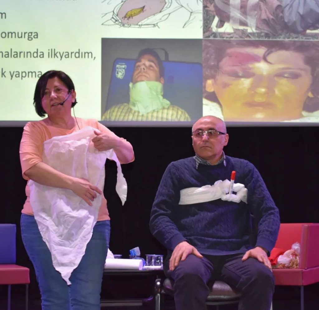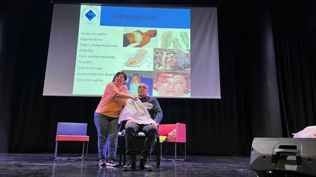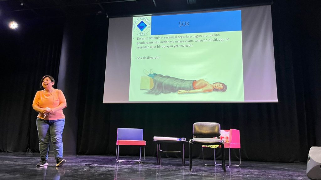 Uzman Eğitmen Hemşire Sevda Cora’nın rehberliğinde gerçekleştirilen eğitimde, ilk yardımın temel konuları ele alındı. Seminerde, hasta ve yaralı değerlendirilmesi, olay yeri analizi, kanama ve yaralanmalarda yapılması gereken ilk yardım müdahaleleri gibi hayat kurtaran bilgiler paylaşıldı. Ayrıca, boğaza yabancı cisim kaçması durumunda yapılması gerekenler de katılımcılara anlatıldı.